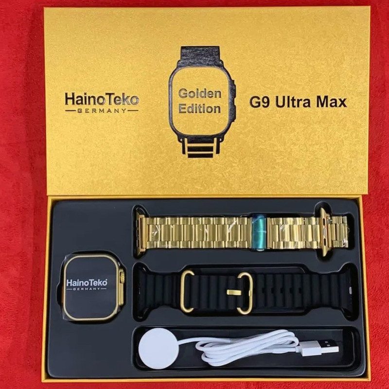 اسمارت واچ Haino Teko G9 Ultra Max محصولی جدید و زیبا در سال 2023 شرکت هاینو تکو آلمان است که به جرات میتوان گفت یکی از بهترین اسمارت واچ های طرح اپل بازار می باشد این محصول دارای امکاناتی هم چون بلوتوث کال ، اسمارت نوتیفیکیشن ، NFC ، قطب نما ، بارو متر ، اندازه گیری فشار خون ، اکسیژن خون ، گام شمار ، کنترل وضعیت خواب و بی تحرکی ، وضعیت اب و هوا ، حالات مختلف ورزشی و ... است .