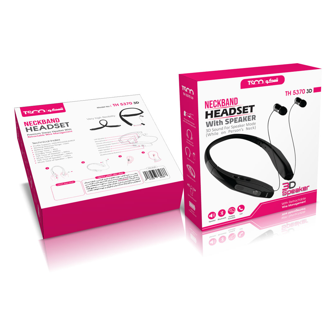 ايرفون جدید «تسکو» مدل TH 5370(3D) محصولي با طراحي منحصربه ‌فرد از اين برند است. تل اين ايرفون دور گردن قرار مي‌گيرد و گوشي آن به صورت مخفي بوده و داراي سيستم جمع شوندگي کابل است که موقع استفاده مي‌توانيد آن‌ها را بيرون بياوريد.