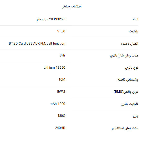 | حداکثر برد بلندگو | 10 متر |