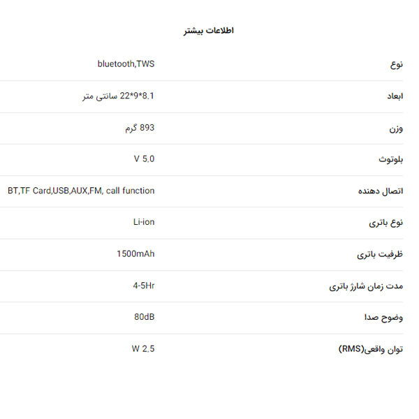 | مشخصات دیگر | با قابلیت TWS |