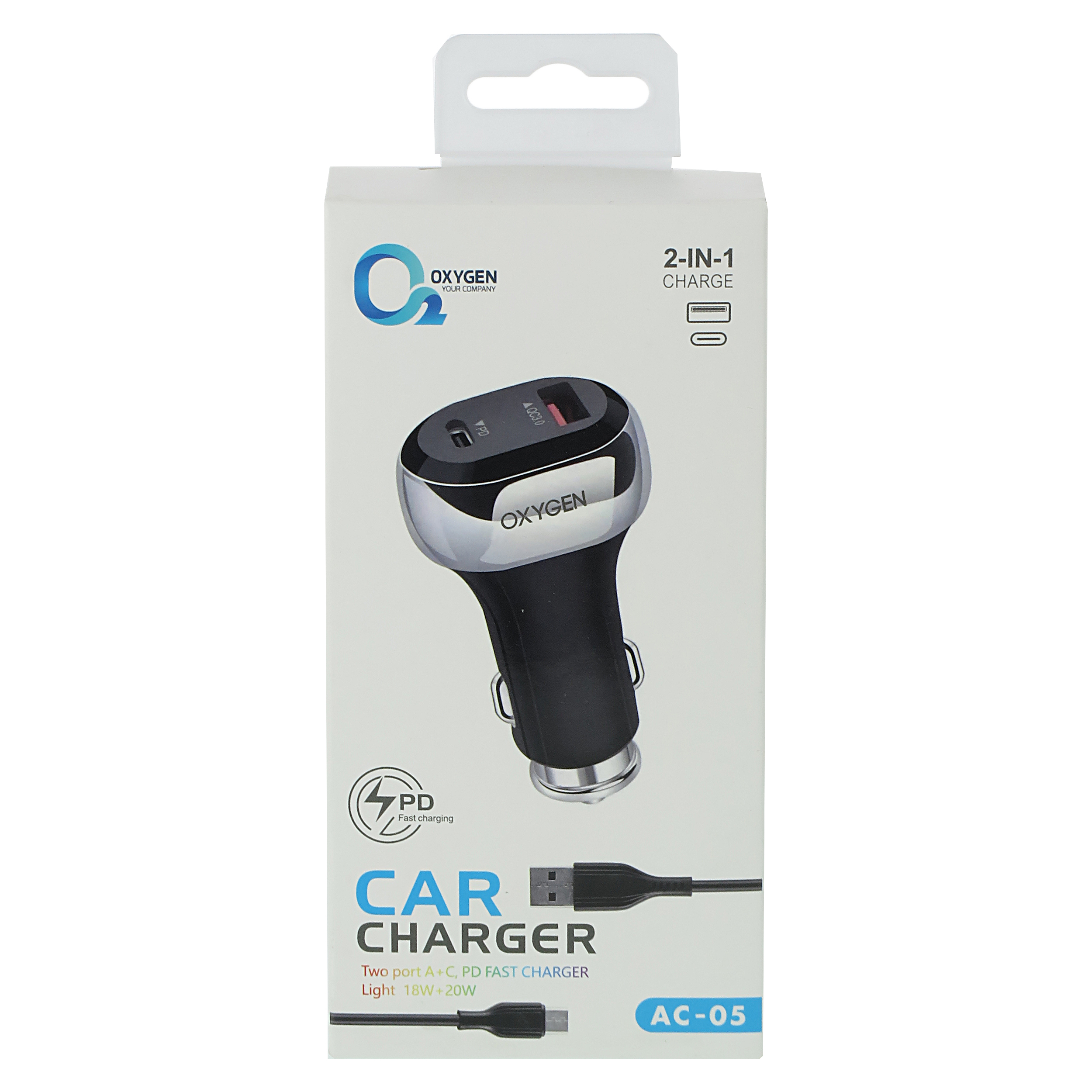 شارژر فندکی OXYGEN مدل AC-05 با استفاده از فندکی ماشین می تواند شارژ مورد نیاز گوشیهای هوشمند و تبلتها را تامین کنند. و از نقاط قوت آن می توان به داشتن دو پورت USB که 18 وات و USB-C که PD و 20 وات است و فست شارژ هستند اشاره داشت.