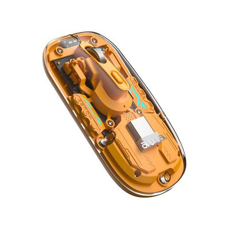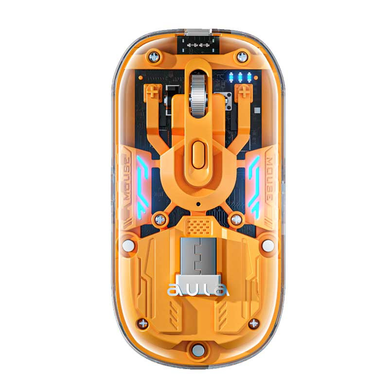 ماوس بیسیم برند آئولا مدل AM210 با طراحی زیبا و خاص بوده که به صورت شیشه ای طراحی شده و با ظاهری بسیار جذاب و مقاوم به همراه نورپردازی و طراحی سبک به منظور راحتی استفاده در طولانی مدت می باشد. همچنین دارای ابعاد 113x58x26 میلیمتر بوده و با قدرت حسگر 800-1200-1600 نقطه بر اینچ با امکان تغییر توسط کلید DPI می باشد. منبع تغذیه این محصول باتری داخلی قابل شارژ بوده که خیال شما را از بابت باتری تعویض راحت می کند به طوری که بعد از اتمام شارژ باتری دیگر نیاز به تعویض و پرداخت هزینه ندارید تنها با اتصال کابل شارژ از طریق درگاه تایپ سی می توانید به راحتی مجددا شارژ نمایید. این ماوس بیسیم آئولا از طریق دانگل یو اس به به سیستم شما متصل می شود.