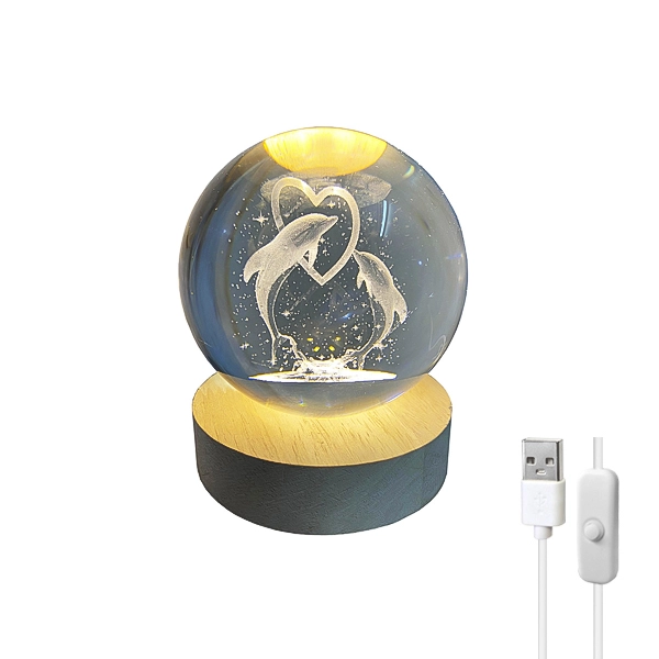 چراغ خواب گوی کریستالی سه بعدی طرح دلفین و قلب