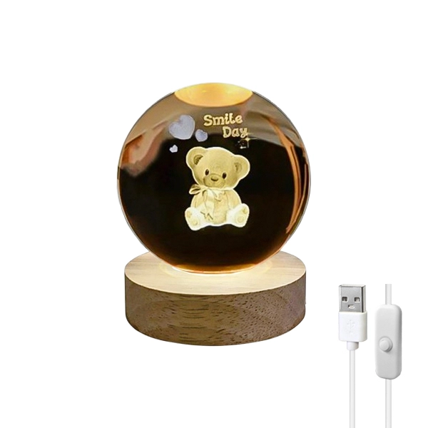 - طرح خرس سهبعدی: یک خرس بانمک با جزئیات کامل که با تکنولوژی حکاکی لیزری خلق شده است، این گوی را به یک آیتم دکوری خاص و یک چراغ خواب ایدهآل برای کودکان تبدیل کرده است.