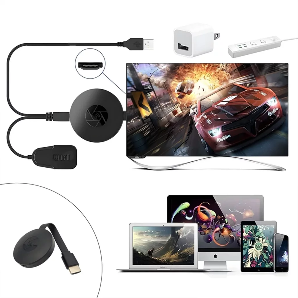 برای استفاده از این دانگل، فقط کافیست آن را به پورت HDMI تلویزیون یا نمایشگر متصل کرده و از طریق وایفای گوشی، لپتاپ یا تبلت به آن وصل شوید. سپس میتوانید فیلم، عکس، بازی و حتی ارائههای کاری را روی صفحه بزرگ ببینید.