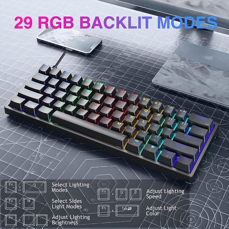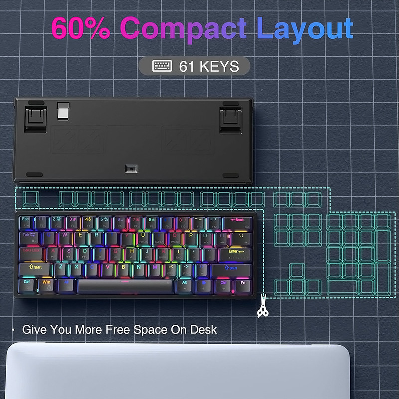 کیبورد مخصوص بازی آئولا مدل F3261 مجهز به نور پسزمینه RGB می باشد که دارای 29 افکت نورپردازی خیره کننده و نوار نوری در کناره های کیبورد می باشد که در محیط های تاریک زیبایی این کیبورد را دوچندان می کند. درگاه ورودی این محصول از نوع تایپ سی بوده که قابلیت جدا شدن دارد و طرف دیگر آن دارای پورت USB می باشد که می توانید آن را به راحتی به لپ تاپ و کامپیوتر متصل کنید. این کیبورد گیمینگ آئولا بدون نیاز به نصب هرگونه نرم افزار جانبی توانایی اتصال دارد و با اکثر سیستم ها همچون ویندوز، مک و لینکوس سازگاری دارد.