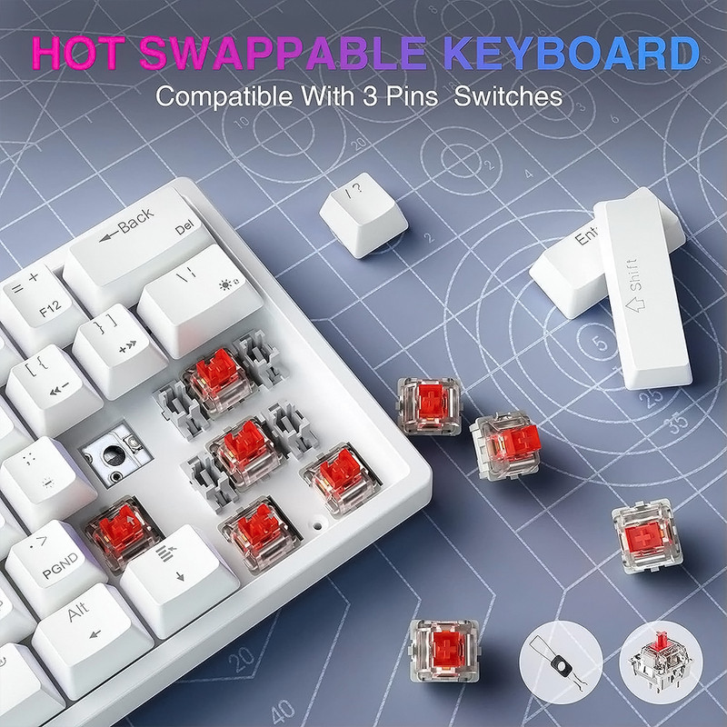 کیبورد گیمینگ آئولا مدل F3261 دارای طراحی جمع و جور و زیبا بوده که تمام قابلیت های آن از طریق کلید ترکیبی FN می توانند استفاده شوند. این کیبورد دارای 61 عدد کلید مکانیکال با سوئیچ هایی به رنگ قرمز و طول عمر 50 میلیون بار ضربه هستند که برای انجام بازی های رایانه های و همچنین تایپ بسیار مناسب می باشند و از سرعت بسیار بالایی برخوردار هستند. با وجود تکنولوژی Anti Ghosting می توانید همه کلیدها را به طور همزمان فشار دهید بدون اینکه تداخلی در عملکرد آنها بوجود بیاید. بنابرین می توانید بدون داشتن خطا در بازی ها و کارهایی همچون تایپ به راحتی از آن استفاده نمایید.