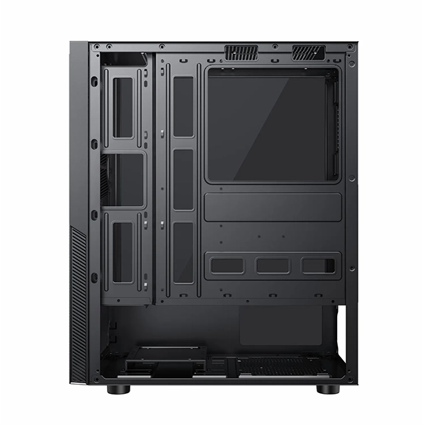 - ✔️ نمایش کامل سیستم با پنل شیشهای: پنل جانبی از جنس شیشه حرارتدیده (Tempered Glass)، نمایی بدون مانع از قطعات داخلی، مدیریت کابل و هنر اسمبل کردن شما را به نمایش میگذارد.
