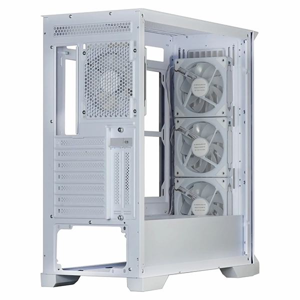 - ✔️ نورپردازی چشمنواز با ۴ فن ARGB: مجهز به سه فن 120mm ARGB در جلو و یک فن 120mm ARGB در پشت که نور آنها روی بدنه سفید، زیبایی دوچندانی پیدا میکند و از طریق هاب کنترلر قابل مدیریت است.