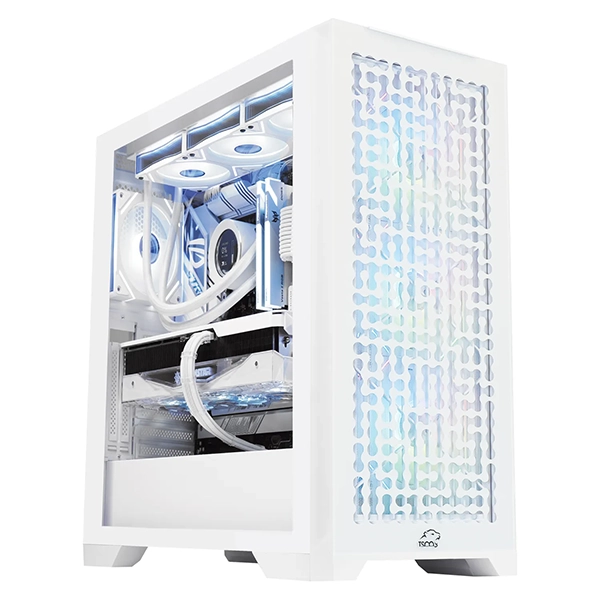 - ✔️ ایدهآل برای ستاپهای سفید: طراحی تمام سفید بدنه، فضای داخلی و کابلها، این کیس را به بهترین انتخاب برای هماهنگی با قطعات سفید رنگ مانند مادربرد، کارت گرافیک و خنککننده مایع تبدیل کرده است.