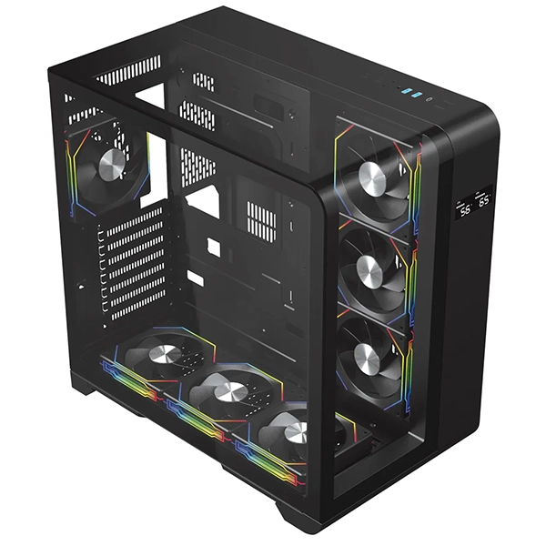 - ✔️ نمایشگر دیجیتال دما: مجهز به یک صفحه نمایش کوچک و کاربردی روی بدنه که به صورت زنده دمای پردازنده (CPU) و کارت گرافیک (GPU) را نمایش میدهد تا همیشه بر عملکرد سیستم خود نظارت داشته باشید.