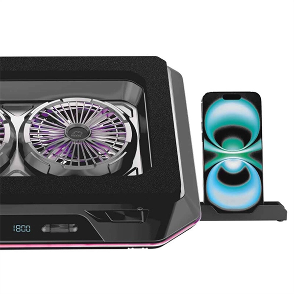 - ✔️ طراحی شده برای غولها؛ سازگار با لپتاپ تا ۱۹ اینچ: بدنه مستحکم و سطح وسیع این کول پد، آن را به گزینهای ایدهآل برای لپتاپهای گیمینگ سنگین و بزرگ تا سایز ۱۹ اینچ تبدیل کرده است.