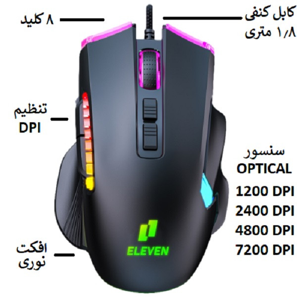 ماوس GM5 شرکت ایلون مدل جدیدی از ماوس گیمینگ هستش که این شرکت به بازار عرضه کرده، بهد از مدل های گیمینگ موفقی که این شرکت به بازار عرضه کرده GM5 میتواند سهم خوبی از بازار ماوس های گیمینگ را از آن خود کند. این مدل با قالب جدید و به روز خود همراه با نور نور پردازی فوق العاده هر گیمیری را جذب خود میکند. همچنین از سنسور قدرتمند اپتیکال با حساسیت تا 7200 DPI بهره میبرد که باعث سرعت و دقت فوق العاده در بازی می شود.