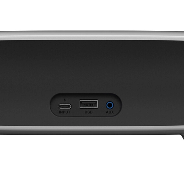 - ✔️ اتصالات متنوع و کاربردی: علاوه بر بلوتوث، این ساندبار دارای ورودی AUX، درگاه USB برای پخش مستقیم از فلش مموری و درگاه USB-C برای تأمین برق است.