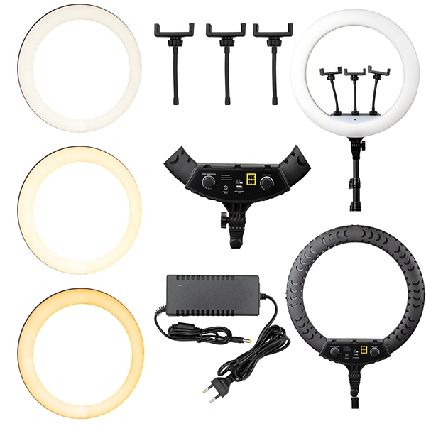 پایهی همراه رینگ لایت از جنس فلزی با ارتفاع قابل تنظیم است که به راحتی روی زمین یا میز قرار میگیرد. نصب این محصول تنها در چند دقیقه انجام میشود و با استفاده از پورت USB یا آداپتور برق تغذیه میشود. برای نورپردازی پرتابل و سریع، میتوانید از گزینههای کوچکتری مانند رینگ لایت مدل Filling Light 10 Inch نیز دیدن فرمایید.