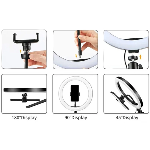 رینگ لایت هیرو مدل YQ-520A با طراحی مقاوم و مدرن، امکان نصب موبایل یا دوربین را در مرکز حلقه نور فراهم میکند. همچنین پایه قابل تنظیم، آینه، نگهدارنده گوشی و ریموت کنترل نیز همراه دستگاه ارائه میشود.