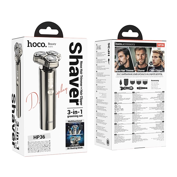 ریش تراش 3 در 1 هوکو HP36 با سه سری مجزا (اصلاح صورت، خط زن، موزن بینی)، نمایشگر دیجیتال و استاندارد ضدآب IPX6. شارژدهی 60 دقیقهای برای یک اصلاح کامل. خرید اقساطی با گارانتی 12 ماهه پژواک.