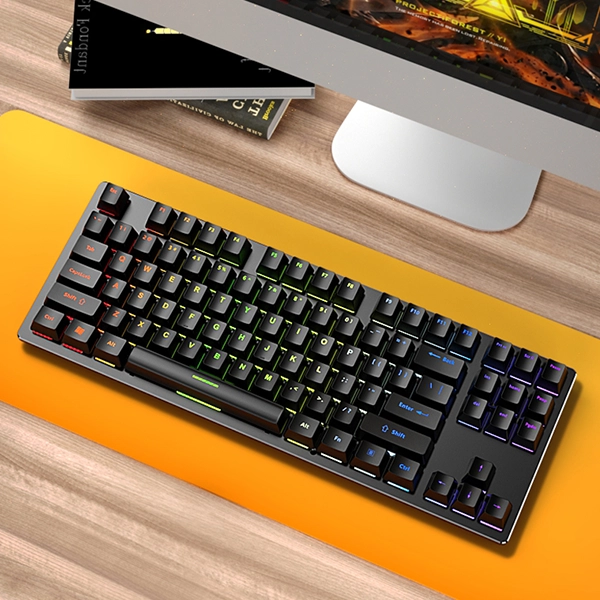 - طراحی TKL (Tenkeyless) برای حرفهایها: با حذف بخش عددی (Numpad)، کیبورد JK510 فضای بسیار بیشتری برای حرکت آزادانه موس در اختیار شما قرار میدهد. این طراحی جمعوجور برای گیمرهای سبک FPS و کسانی که میز کار محدودی دارند، ایدهآل است.