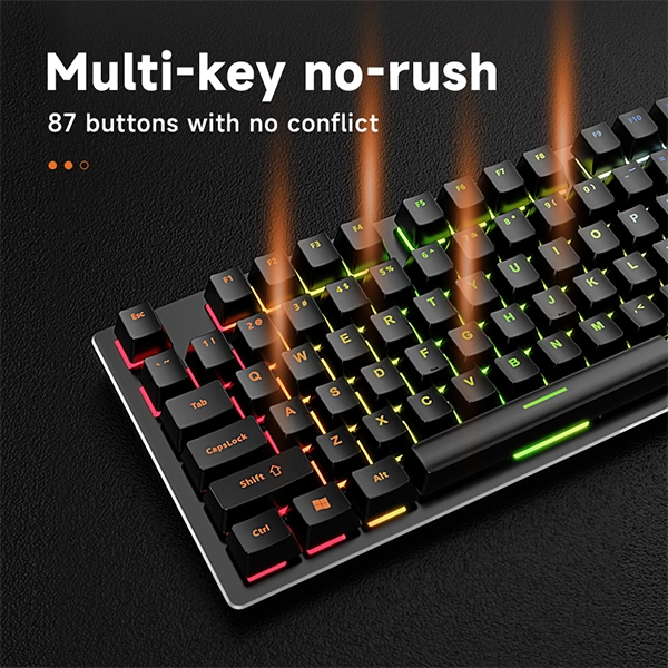 - تکنولوژی Full Anti-Ghosting: با قابلیت N-Key Rollover، میتوانید تمام ۸۷ کلید را به صورت همزمان فشار دهید و مطمئن باشید که تمام دستورات شما بدون هیچگونه خطا یا تداخلی ثبت میشود. این ویژگی برای بازیهای سرعتی و پیچیده حیاتی است.
