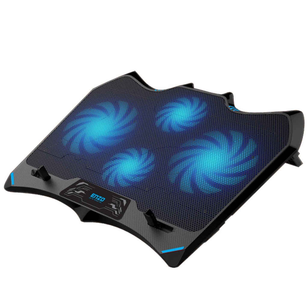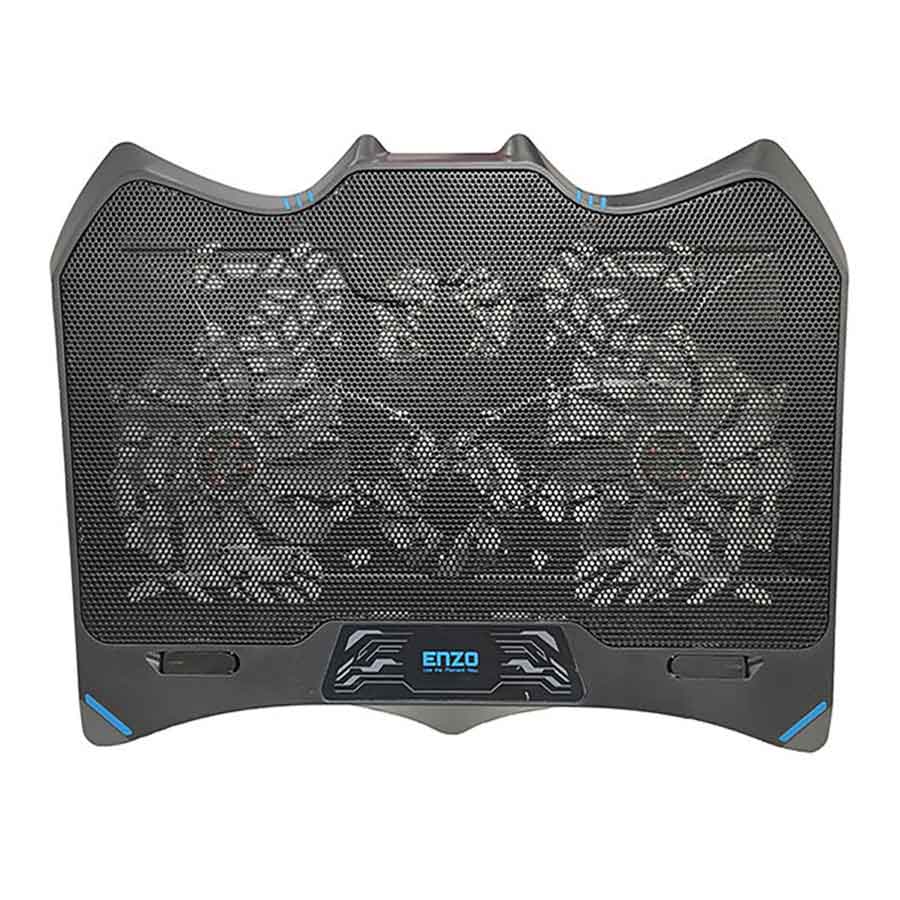 پایه ی خنک کننده و نگهدارنده لپ تاپ ENZO LF-441 در ابعاد جمع و جور مناسب لپ تاپ های تا 17 اینچ طراحی شده است. دارای چهار عدد فن است که دارای قابلیت نورپردازی LED می باشد. جنس بدنه این محصول از فلز آلومینیوم و پلاستیک ABS می باشد که از انتقال حرارت و مقاومت خوبی برای استفاده برخوردار است. همچنین پایه ی خنک کننده ENZO LF-441 قابلیت تغییر و تنظیم ارتفاع در دو حالت مختلف را دارد که می تواند برای استفاده های مختلف بسیار مناسب باشد. ENZO LF-441 دارای دو گیره در قسمت جلویی محصول برای جلوگیری از سر خوردن لپ تاپ می باشد.