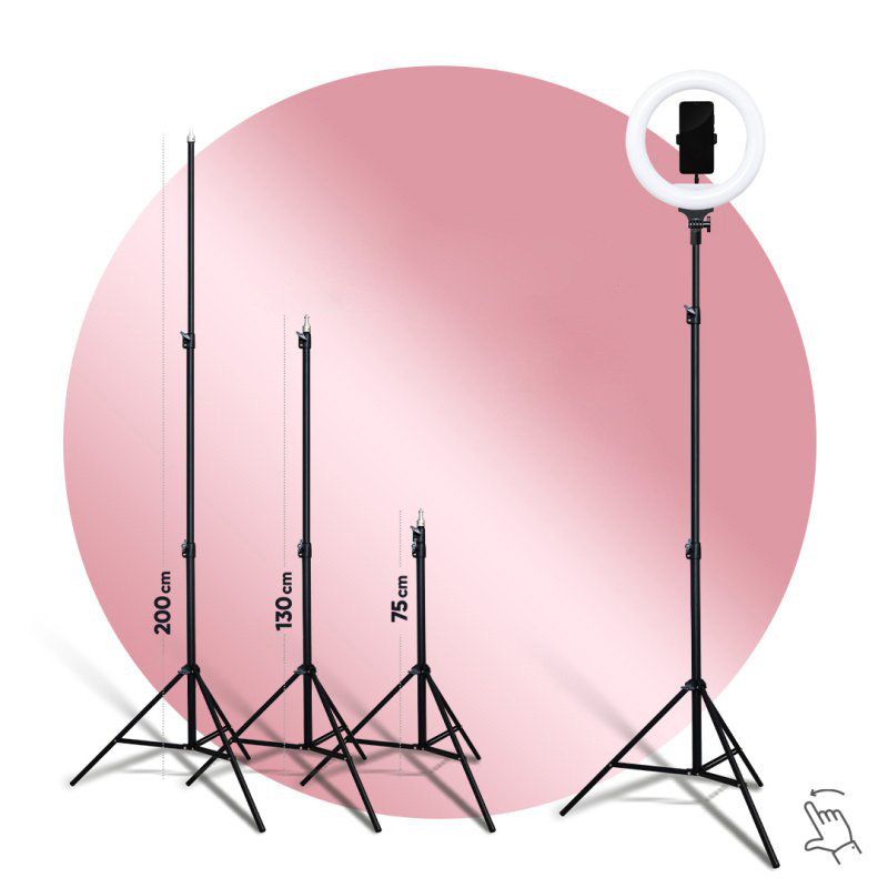 این مدل را میتوانید روی پایه قرار داده و از آن استفاده کنید. یکی دیگر از ویژگیهای این محصول قابلیت کم و زیاد کردن شدت نور است. میتوانید در محیطهایی که نور کمتری به سوژه میتابد، شدت نور رینگلایت را افزایش دهید. همچنین با پایه نگهدارنده ای که برای این رینگ لایت طراحی شده می توانید گوشی همراه خود را روی آن پایه قرار دهید و سپس پایه را در محل مشخص در وسط دایره لینگ لایت قرار داده و از عکس و فیلم های سلفی خود لذت بالایی ببرید.همچنین پایه ای که به همراه این کالا تقدیم مشتری می گردد قابلیت تنظیم تا ارتفاع 200 متر را دارد که دست کاربر را برای تصویر برداری از هر زاویه و ارتفاعی باز میگذارد .