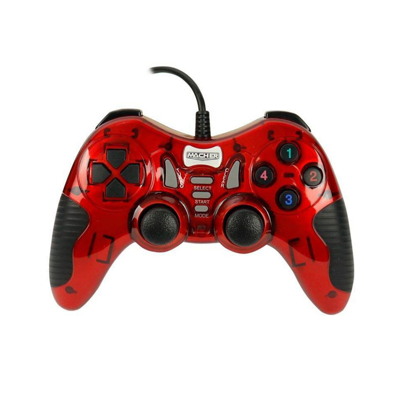 دسته بازی کامپیوتر تک حرفه ای Macher مدل MR-60 با طراحی فانتزی در رنگ بندی مشکی، قرمز، سبز، آبی، سفید مناسب برای بازی های رایانه ای، مخصوص گیمرهای حرفه ای و علاقمندان و اشخاصی که حرفه ای بازی های رایانه ای را دنبال میکنند است. نوع اتصال این دسته بازی کامپیوتر تک حرفه ای Macher مدل MR-59 سیمی بوده و از طریق درگاه USB کامپیوتر یا لب تاپ متصل و با طراحی ارگونومی و ساختار مهندسی ساخته شده از نوعی پلاستیک مرغوب و ترکیب با چرم های مهندسی که علاوه بر شکیل شدن آن متناسب قسمت های در تماس با دست می باشد که از تعریق و لیز خوردن آن در صورت استفاده طولانی جلوگیری میکند.
