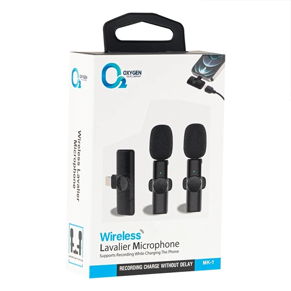 میکروفون بیسیم دو کاربره اکسیژن مدل MK1 (یقهای، تایپ C و لایتنینگ، مخصوص تولید محتوا)