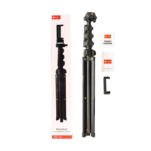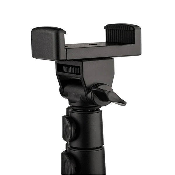 - سازگاری گسترده: این مدل مجهز به پیچ استاندارد 1/4 اینچی است که آن را برای نصب انواع دوربینهای عکاسی DSLR، کامپکت و همچنین رینگ لایتها مناسب میسازد. علاوه بر این، یک هولدر موبایل باکیفیت نیز همراه محصول ارائه میشود که گوشیهایی با عرض 6 تا 9.5 سانتیمتر را به خوبی نگه میدارد.