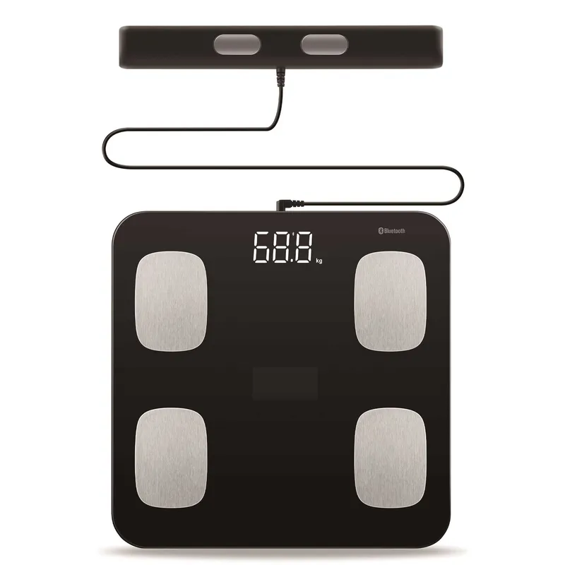 - آنالیز کامل بدن (Full Body Check): با اتصال به اپلیکیشن موبایل از طریق بلوتوث، گزارش کاملی از درصد چربی، توده عضلانی، استخوانبندی، میزان آب بدن و BMI دریافت کنید.