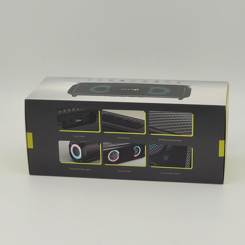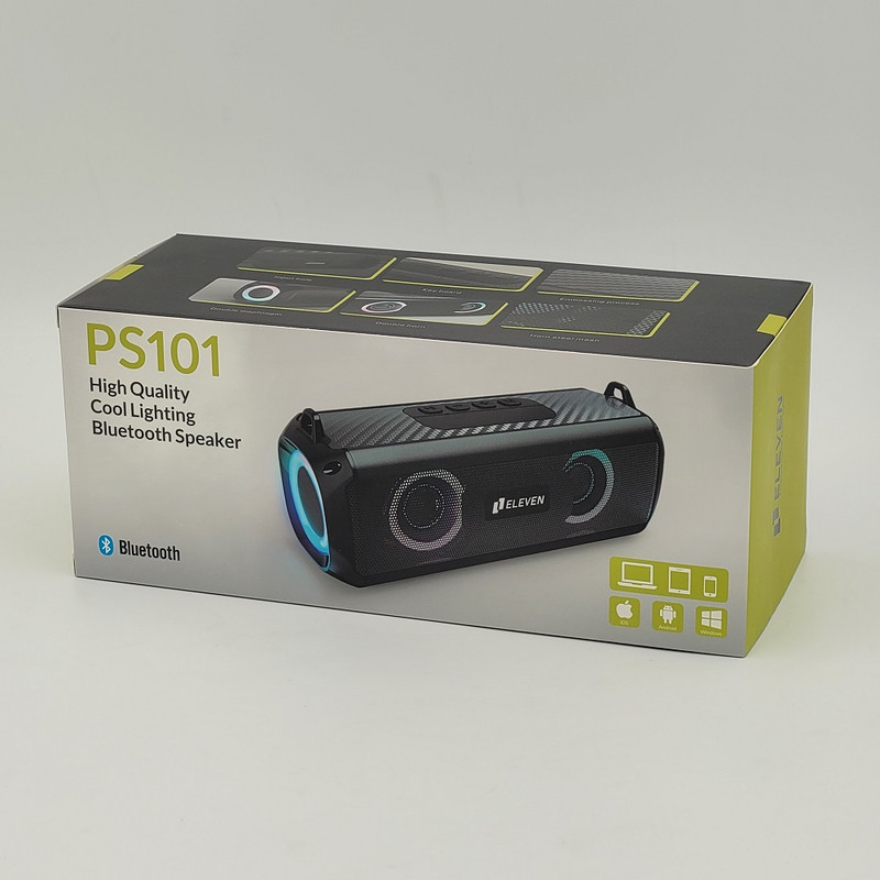 اسپیکر «PS101» محصولی از شرکت «ELEVEN» است که از طریق رابط بلوتوث نسخه 5.1 و فناوری بلوتوث به تلفنهمراه یا پخشکنندهی صوتی شما متصل میشود و شما را در گوش کردن به موسیقی مورد علاقهتان همراهی میکند. این اسپیکر ابعاد بسیار مناسبی دارد به گونهای که میتوان همیشه آنرا همیشه با خود به همراه داشته باشید و از وجود یک اسپیکر بلوتوثی بهره ببرید. اگر تلفنهمراه یا پخشکنندهی صوتی شما از بلوتوث پشتیبانی نمیکند به راحتی میتوانید از طریق جک 3.5 میلیمتری صدای تلفنهمراه خود را به آن متصل کنید. فرکانس پاسخگویی این اسپیکر 20 هرتز تا 20کیلوهرتز بوده که مقدار مناسبی برای یک اسپیکر بلوتوثی در این ابعاد به شمار میرود. اسپیکر بلوتوثی ELEVEN مدل PS101 انرژی خود را از یک باتری داخلی تامین میکند که میتواند تا 8 ساعت به پخش مداوم موسیقی بپردازد. اسپیکرهای بلوتوثی ابزارهای بسیار کاربردی برای گوش کردن به موسیقی هستند. این اسپیکر با دو باند جداگونه قابلیت پخش استریو را دارد.