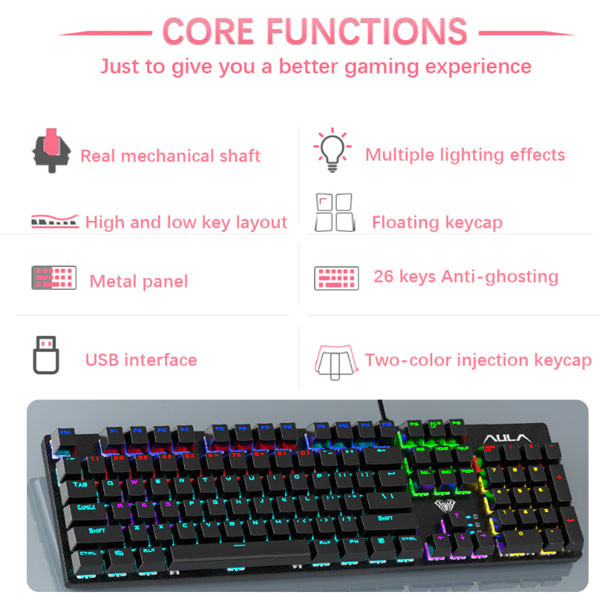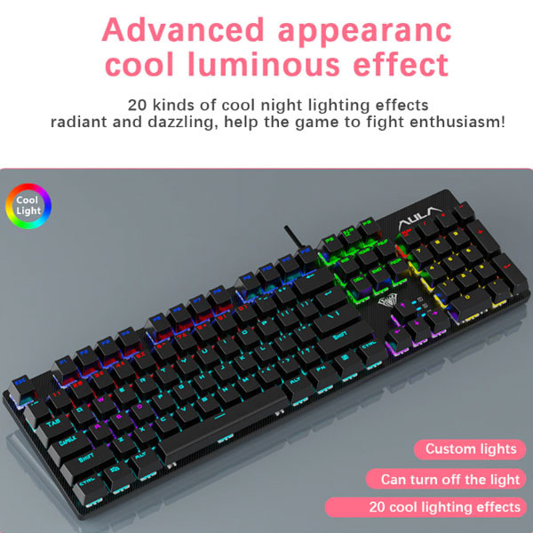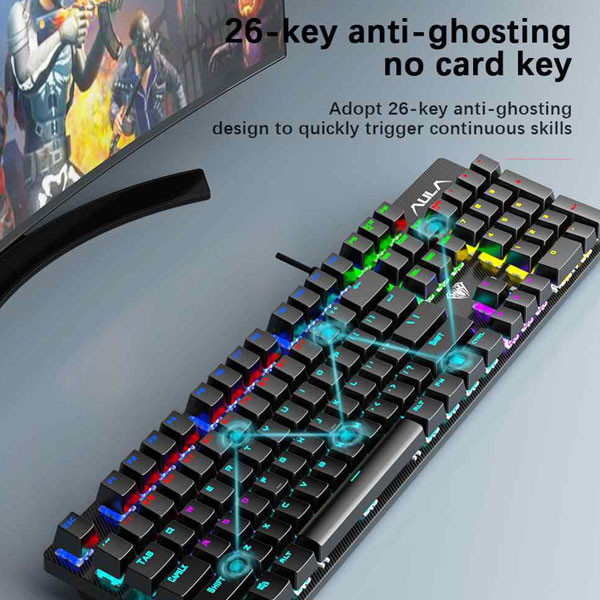 کیبورد گیمینگ آئولا S2022 دارای 104 کلید قابل برنامه ریزی که با هر فشار شدید کلید در هنگام بازی و تایپ سریع کار میکند و اصلا مهم نیست که چند کلید دیگر به طور همزمان فشار داده میشود . این امر به شما این امکان را می دهد که از بازی های درجه یک در سریع ترین زمان پاسخ گویی و واکنش سریع از سوی کیبورد لذت ببرید . این کیبورد از طریق اتصال باسیم و پورت USB به سیستم شما متصل می شود .