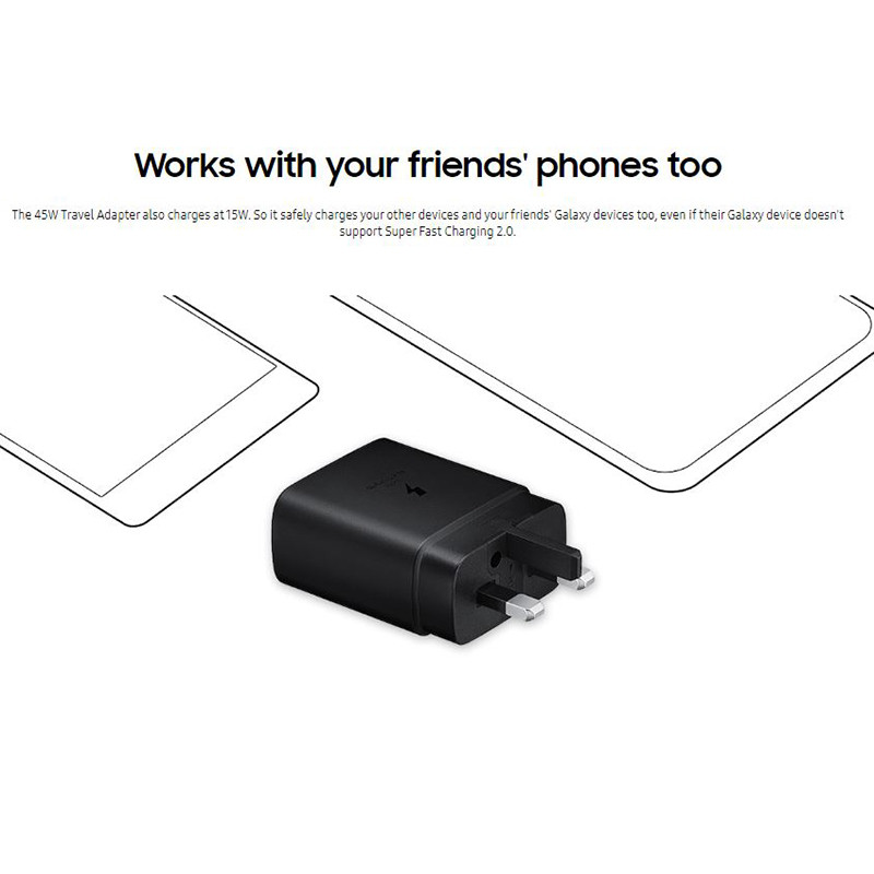 این آداپتور دارای فناوری PD 3.0 است که با استفاده از آن می توانید دستگاه خود را با سرعت بیشتر و با توان 45 وات شارژ کنید. شدت جریان خروجی این شارژر 5 آمپر می باشد که می توان از آن برای شارژ کردن تبلت هم استفاده کنید. برای این شارژر از چیپ هوشمندی استفاده شده تا با اتصال دستگاه به صورت خودکار جریان مناسب را برای دستگاه تامین کند. درگاه خروجی این محصول هم از نوع USB-C است. البته در کنار این شارژر یک کابل تبدیل USB-C به USB-C به طول یک متر هم ارائه میشود.این شارژر از سایر محصولات و موبایل های سری 2019 به بالا و گوشی هایی که توانایی شارژ سوپرفست را دارند پشتیبانی می کند.