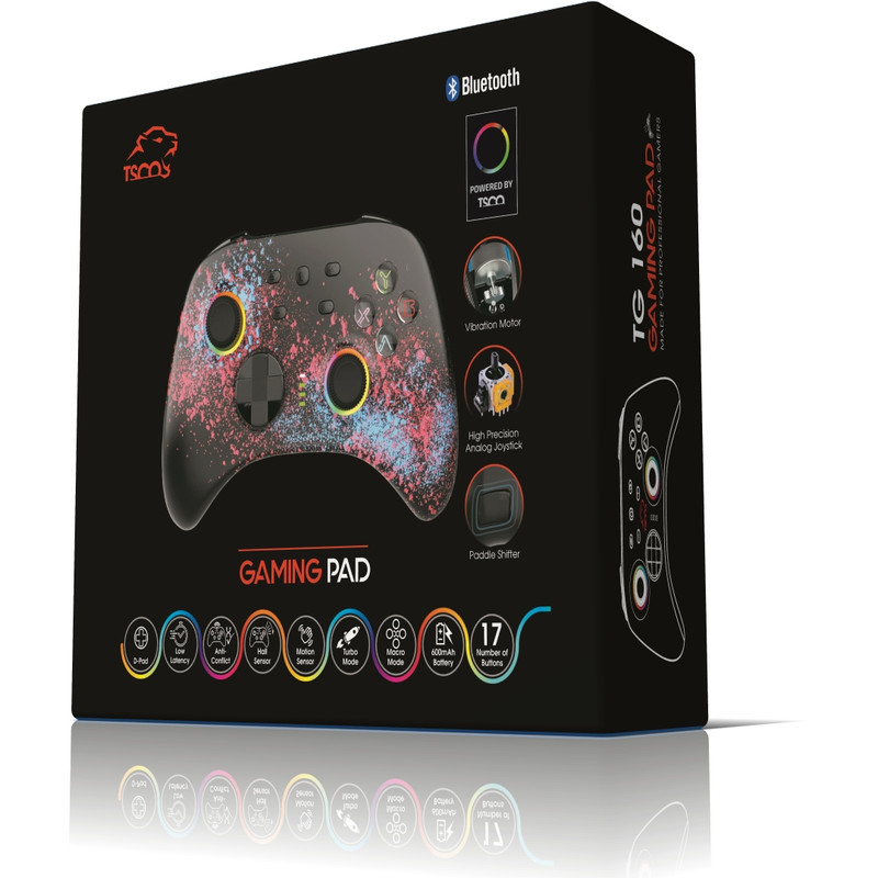 این دسته گیم دارای 17 دکمه مختلف است که کنترل کاملی بر روی بازیهای مختلف به شما میدهد. دکمههای این دسته بازی با توجه به ارگونومی دست طراحی شدهاند که باعث میشود تا شما بدون خستگی طولانی مدت بازی کنید. همچنین، این محصول با دستگاههای SWITCH، PC، IOS و ANDROID سازگار است، که این امر باعث میشود تا بتوانید از آن بر روی انواع پلتفرمها استفاده کنید. این ویژگی برای کسانی که از دستگاههای مختلف برای بازی استفاده میکنند بسیار مفید است، زیرا نیازی به خرید چندین دسته بازی نخواهند داشت. دسته گیم تسکو مدل TG160 مجهز به یک باتری لیتیوم پلیمری با ظرفیت 600 میلیآمپر ساعت است.