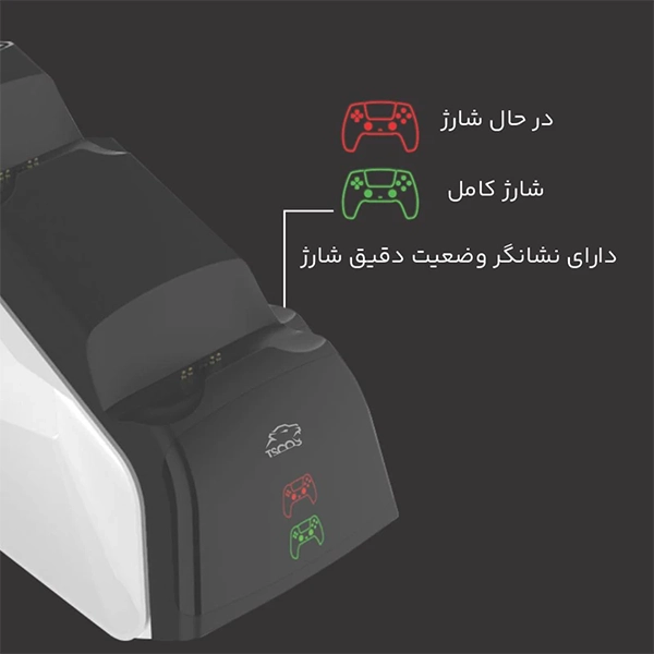 با پایه شارژر قدرتمند 14 واتی تسکو TGC 16، دیگر منتظر نمانید! این داک، دو دسته DualSense را همزمان و در کمتر از ۲ ساعت شارژ کرده و با طراحی زیبا، ستاپ گیمینگ شما را کامل میکند.