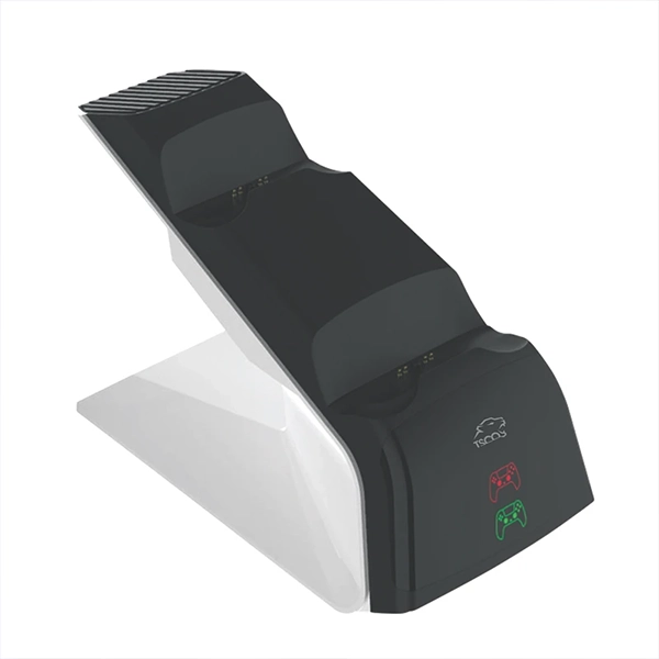 - ✔️ شارژ همزمان و هوشمند دو کنترلر: دو جایگاه مجزا به شما این امکان را میدهد که هر دو دسته خود را به راحتی روی پایه قرار داده و به صورت همزمان شارژ کنید. دیگر نیازی به تعویض کابل و انتظار نیست.