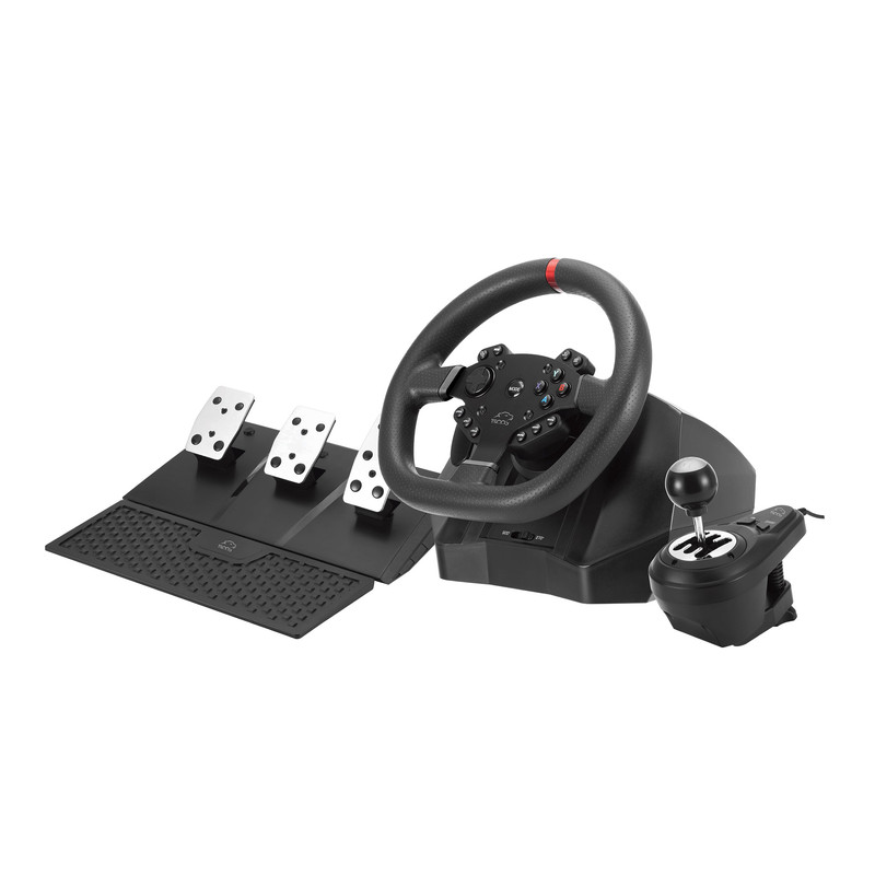 | سایر مشخصات | قطر فرمان : 10 اینچ / قابلیت چرخش 270 تا 900 درجه / دارای پدال و دسته دنده / دارای قابلیت Keymapping / دارای 3 سطح تنظیم حساسیت / جنس بدنه : پلاستیک و فلز / دارای گیره نگهدارنده |