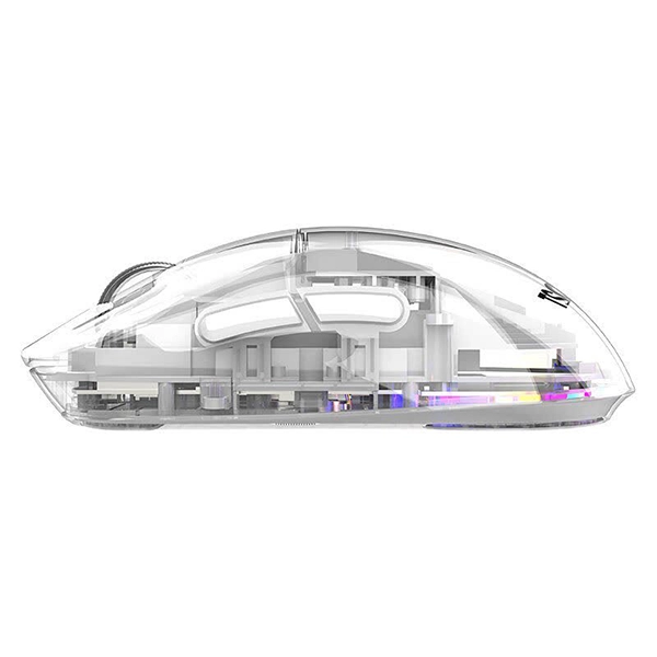 - طراحی شفاف و خیرهکننده: بدنهی کریستالی و شفاف این ماوس به شما اجازه میدهد تا مهندسی داخلی و نورپردازی زیبای RGB آن را تماشا کنید و از یک طراحی منحصربهفرد لذت ببرید.