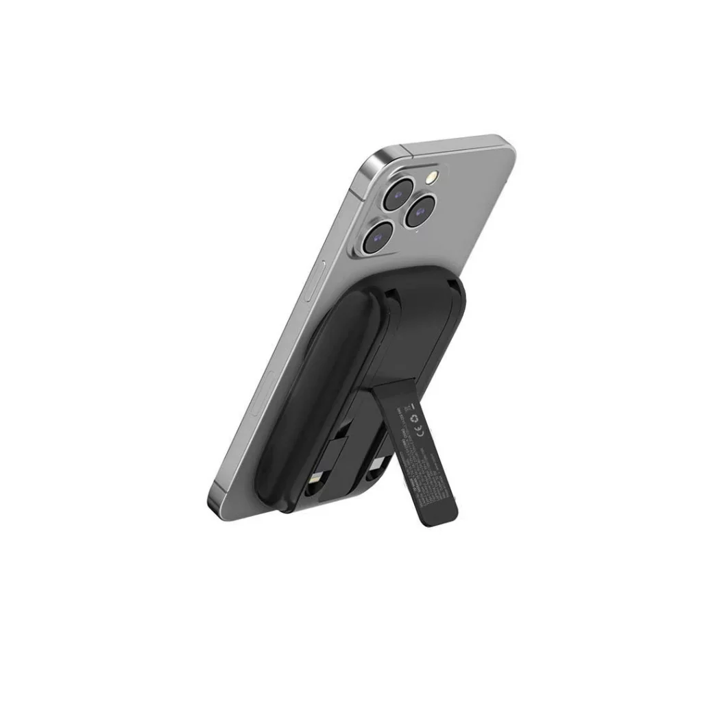 با وزن تنها ۱۳۰ گرم و ابعادی کوچکتر از یک کارت بانکی، TP 906W به معنای واقعی کلمه یک شارژر همراه جیبی است. طراحی آن به گونهای است که هنگام اتصال به گوشی، نه دوربین را میپوشاند و نه در دست گرفتن گوشی را دشوار میکند. مزیت دیگر این مدل، استند یا پایه نگهدارنده داخلی آن است. به راحتی پایه را باز کنید و گوشی خود را در حالت افقی یا عمودی قرار دهید و همزمان با شارژ شدن، از تماشای فیلم یا برقراری تماس تصویری لذت ببرید.