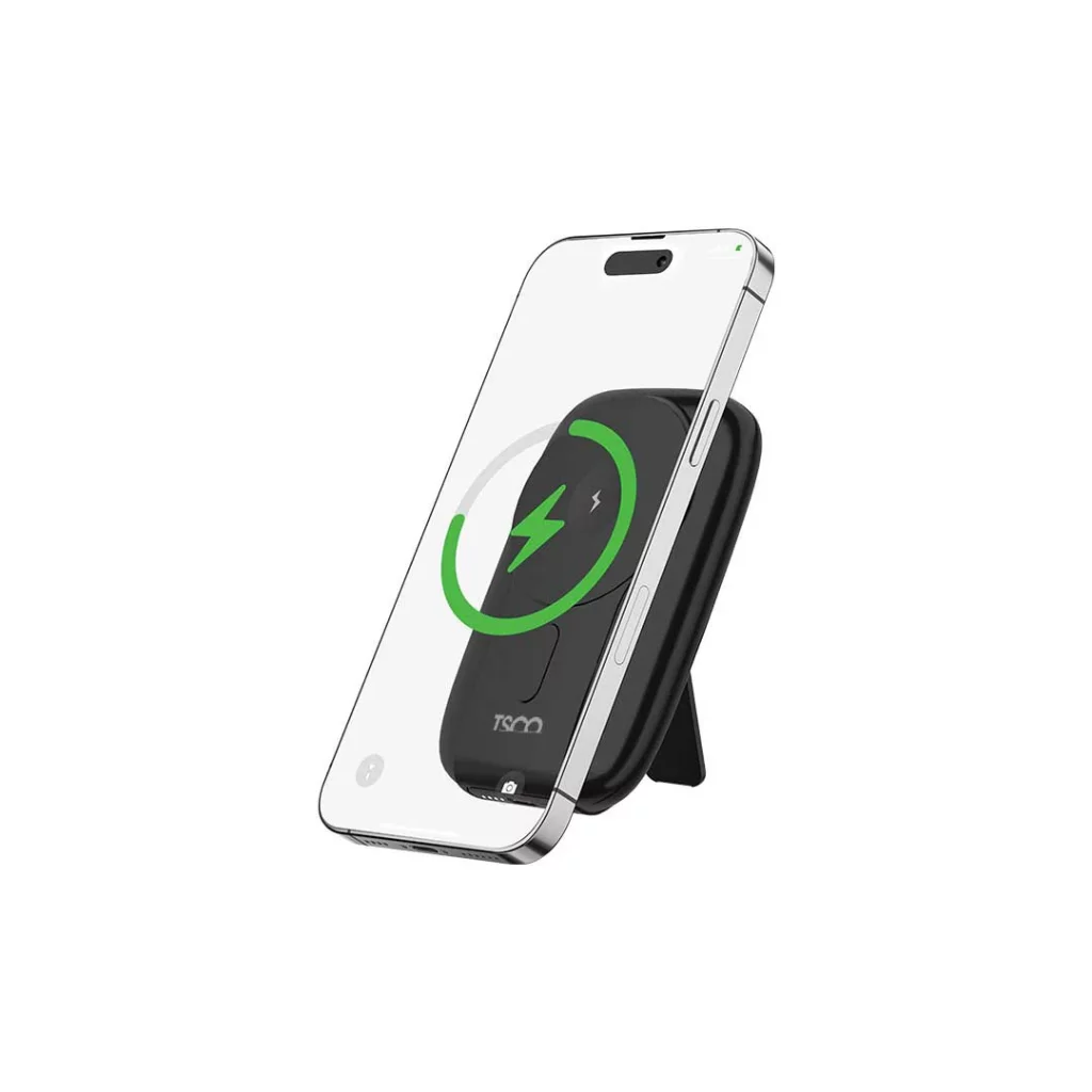 مهندسان تسکو به جزئیات هم فکر کردهاند. یک پایه نگهدارنده (استند) کشویی در بدنه دستگاه تعبیه شده که به شما اجازه میدهد گوشی خود را حین شارژ شدن در حالت افقی قرار دهید و به راحتی فیلم ببینید یا در کلاس آنلاین شرکت کنید. همچنین نمایشگر دیجیتال LED وضعیت شارژ باقیمانده را به صورت دقیق (از ۱ تا ۱۰۰) به شما نشان میدهد تا هرگز غافلگیر نشوید.