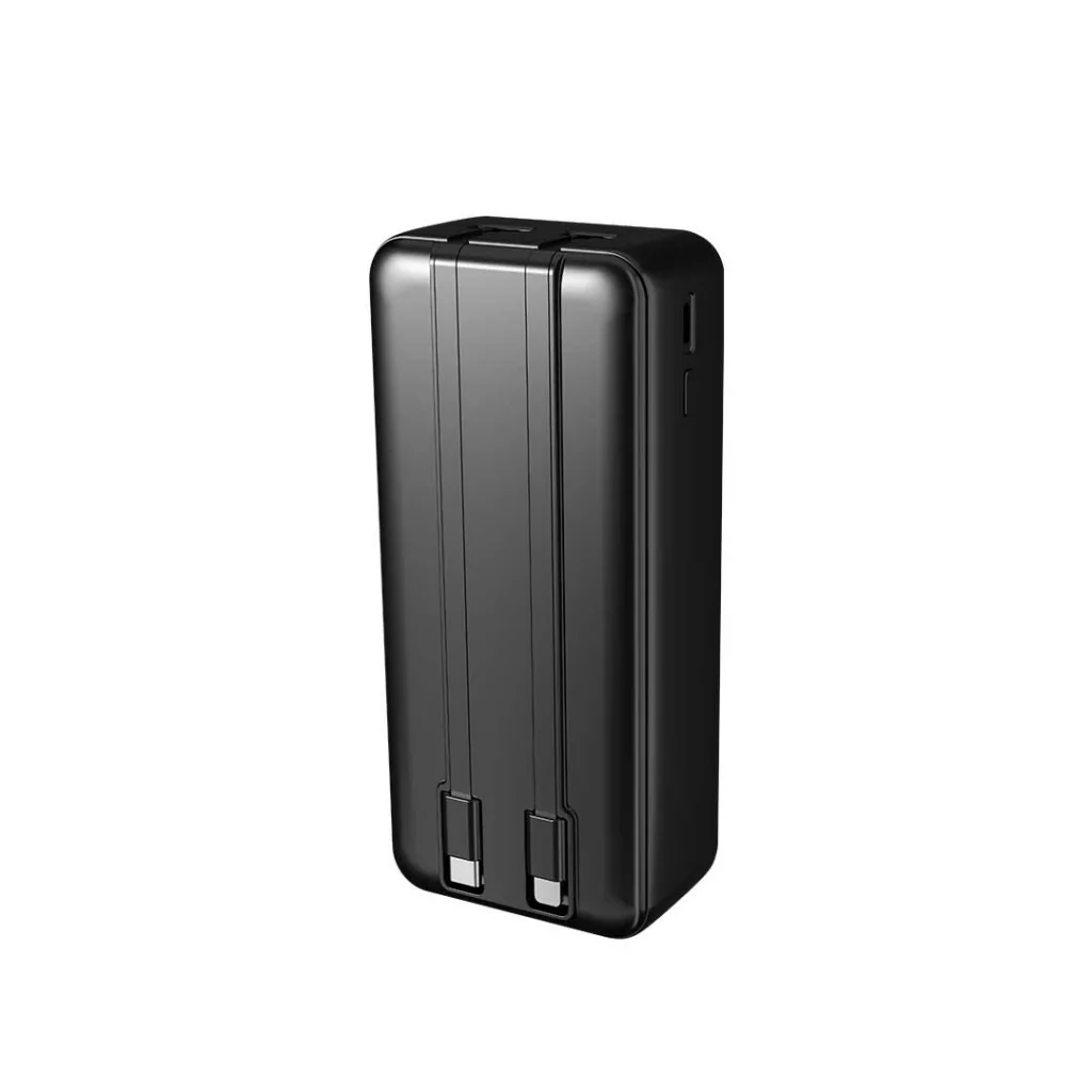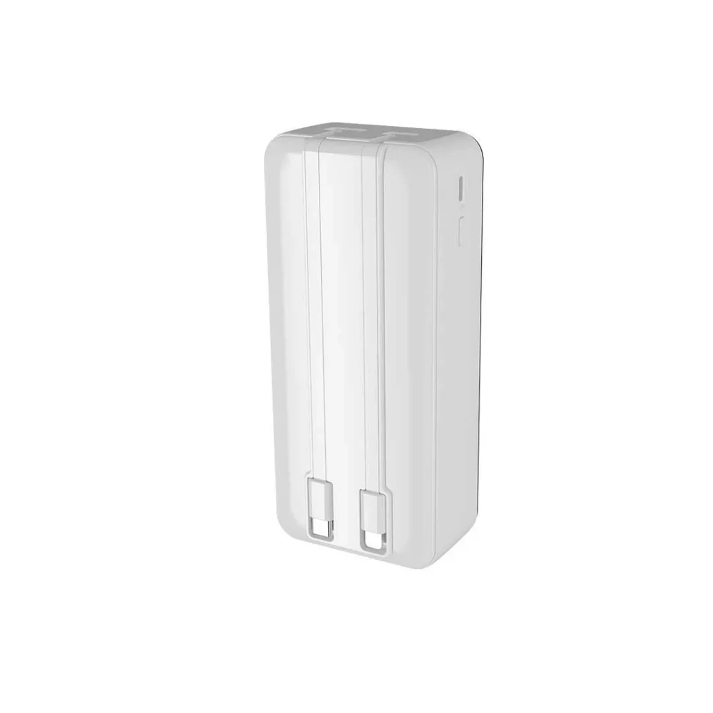 یکی از بزرگترین مزیتهای این پاوربانک، دو کابل متصل به بدنه آن است: یک کابل لایتنینگ برای محصولات اپل و یک کابل Type-C برای دستگاههای اندرویدی. دیگر نیازی به حمل کابلهای اضافه و نگرانی از فراموش کردن آنها نخواهید داشت. همه چیز برای شارژ سریع و آسان آماده است.