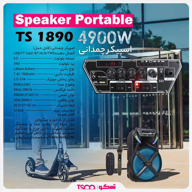 اسپیکر بلوتوثی قابل حمل تسکو مدل TS 1890