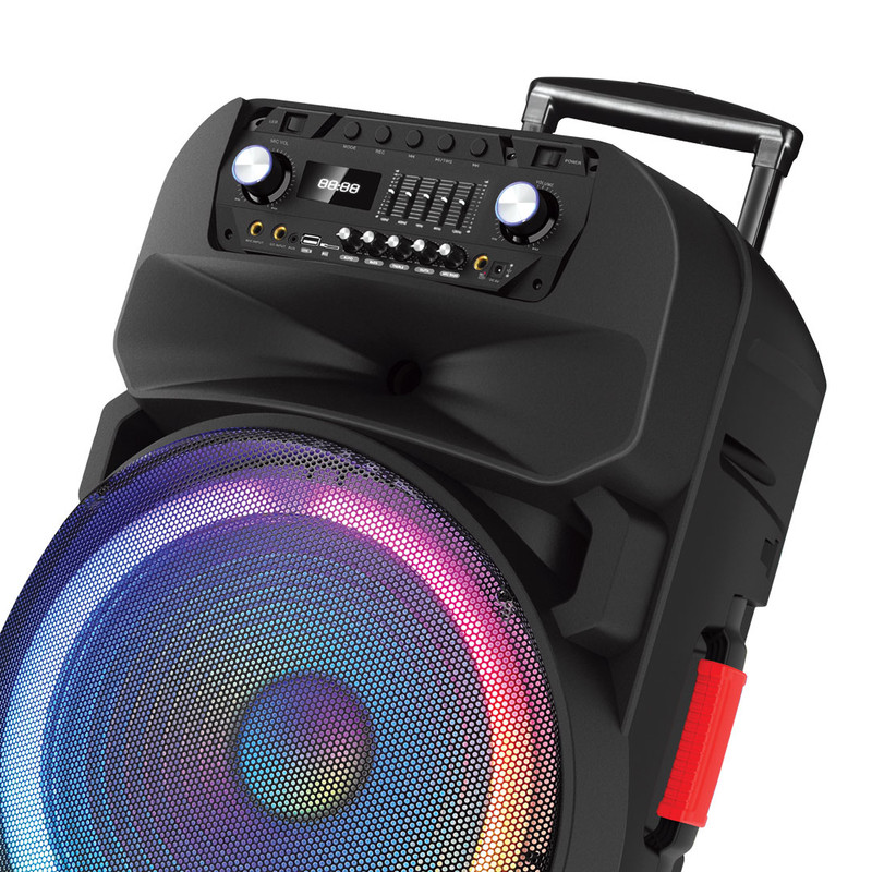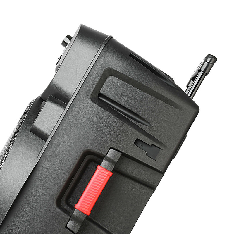 | سایر مشخصات | -دارایLED لایت 2- 5 حالت EQ، توان خروجی 120 وات ، باتری اسیدی 7000 میلی آمپری3- بیس قوی ، با نگه داشتن دکمه مود به مدت 3 ثانیه ، اتصال بلوتوث قطع می گردد. 4- دارای پورت های USB، AUX، گیتار ، میکروفون ، قابلیت اتصال BT و رادیو ، قابلیت TWS 5- دارای کلید کنترل صدا (Delay، گیتار ، اکولایزر، تریبل و بیس میکروفون ) 6- قابلیت کارائوکه با کم کردن صدای خواننده |