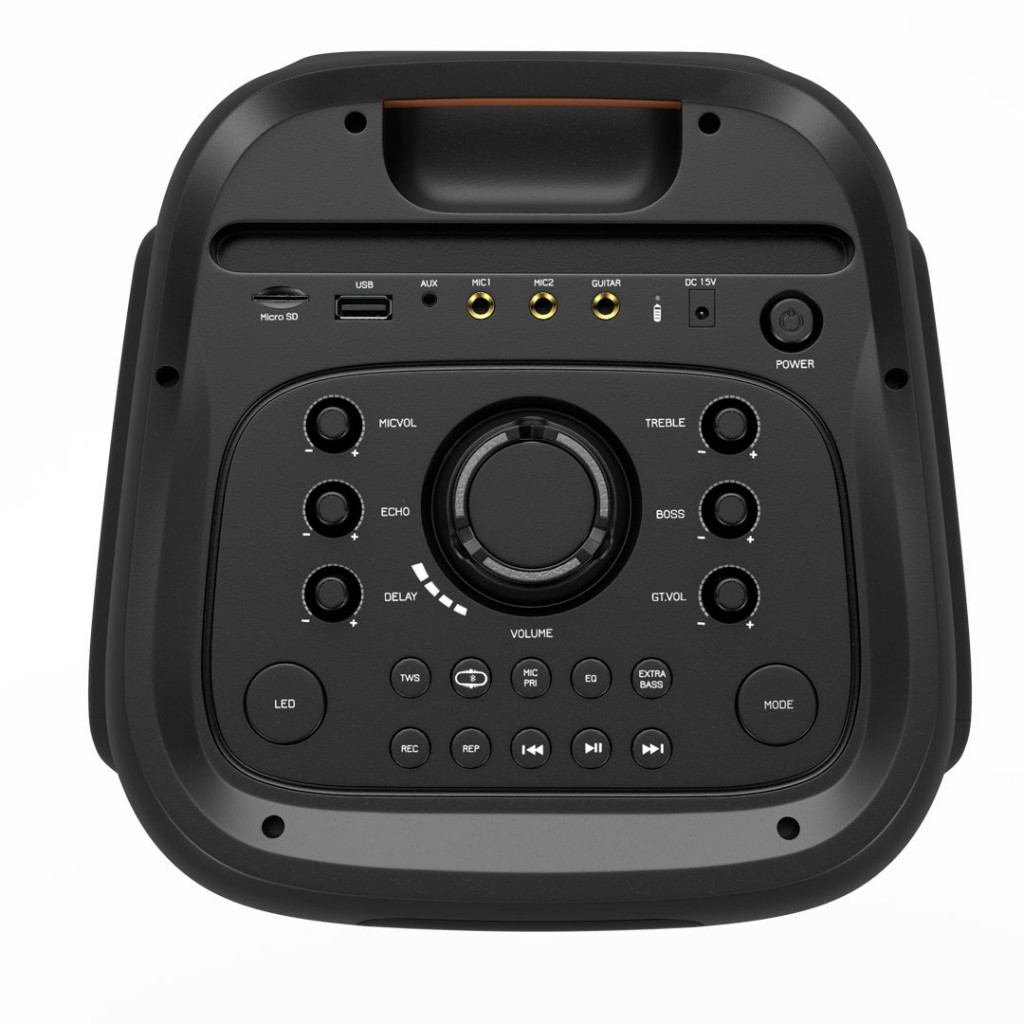 - قابلیت حمل آسان: این اسپیکر با طراحی ترولی و چرخدار، حملونقل راحتی را برای کاربران فراهم میکند.