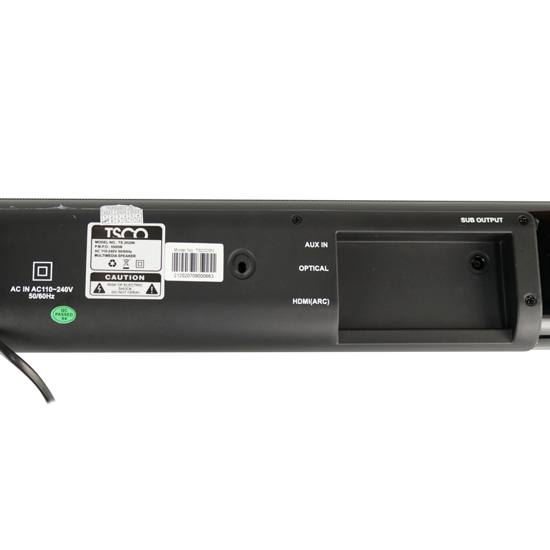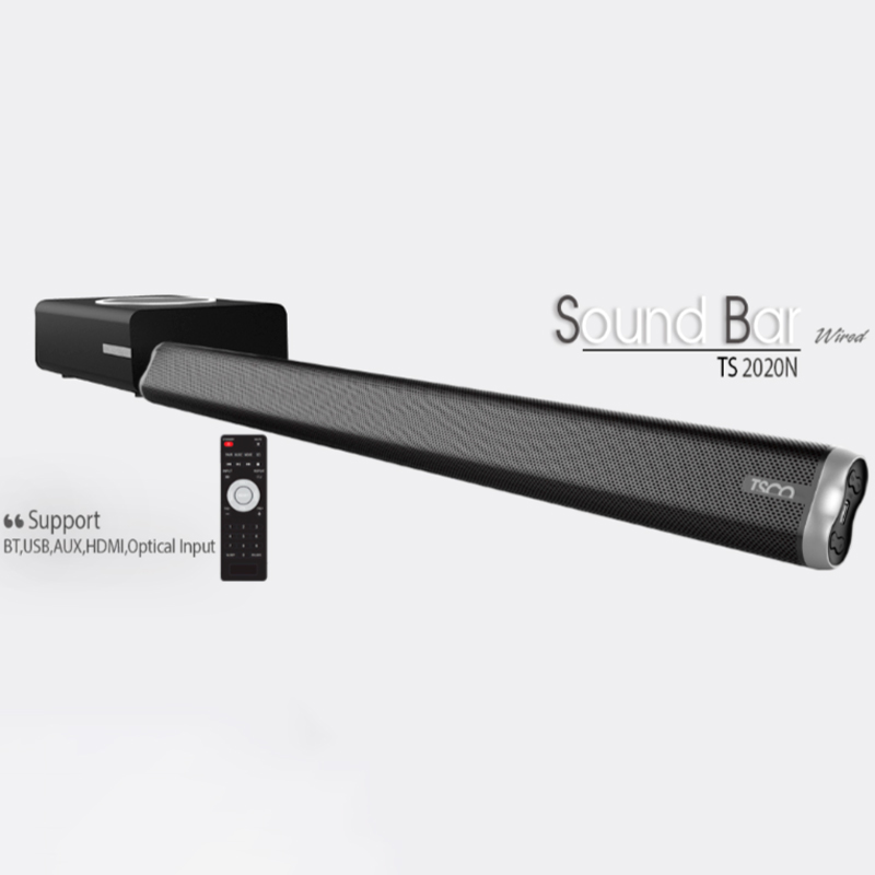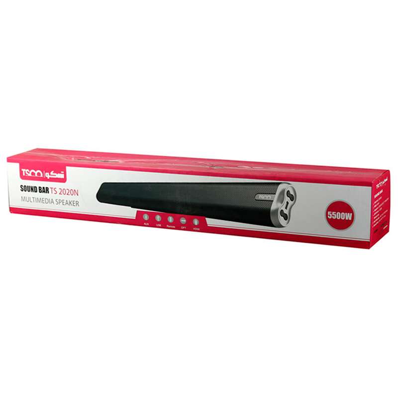ظاهر بروز و جمع و جور ساندبار و ساب ووفر TS 2020N برای کسانی که میخواهند در محیط خانه خود فضای زیادی برای سیستم صوتی اشغال نشود بسیار کاربردیست. کیفیت بدنه این محصول بالا بوده و در بخش جلویی دارای ال ای دی قرمز است که ورودی و تنظیماتی مثل عدد حجم صدا را نمایش میدهد. در کنار ساندبار و ساب ووفر در جعبه یک کابل AUX، یک کابل اپتیکال، دفترچه راهنما، کارت گارانتی و ریموت کنترل موجود است.