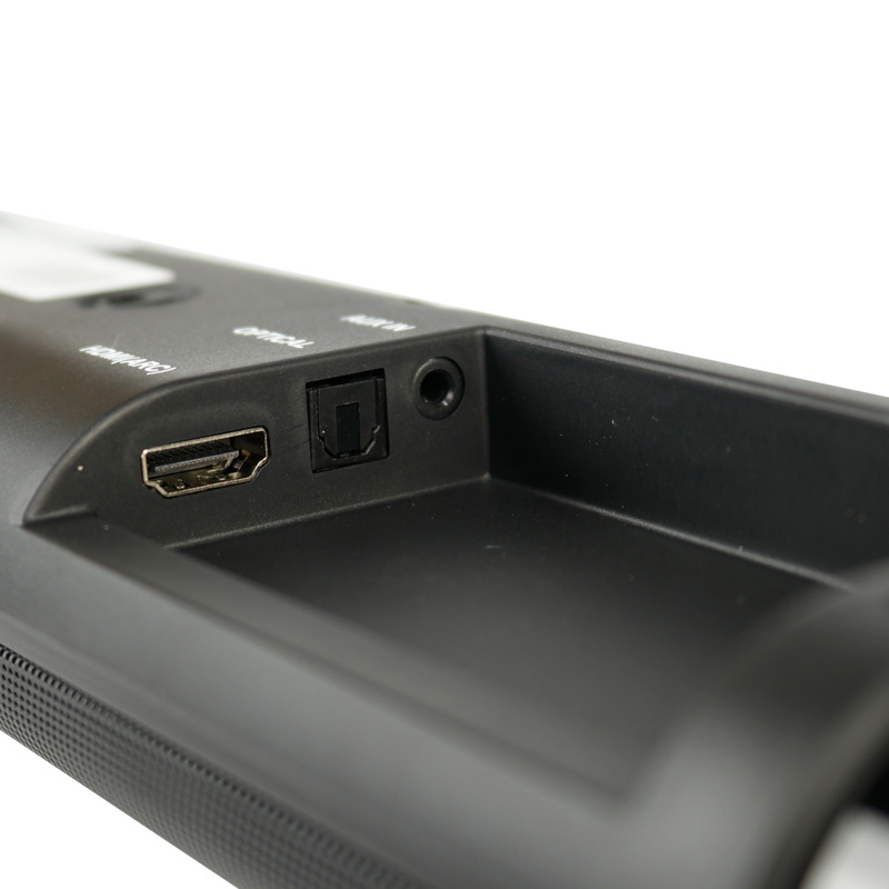 ابعاد ساندبار برابر 900x85x47 میلیمتر و ساب ووفر 360x260x130 میلیمتر بوده و برای انواع فضا مناسب است. اگر نگران کمبود جا هستید از ابعاد این سیستم صوتی خیالتان راحت باشد. از طرفی جای نگرانی برای سیستم ساندبار و ساب ووفر برای پاسخگو بودن در هر اینگونه فضاها نباشید. قدرت، وضوح و تفکیک صدای بالای این سیستم صوتی همه این نگرانیها را برطرف میکند. روی ساندبار 4 دکمه قرار دارد که شامل دکمه پخش و استاپ موسیقی، Backward و Forward موزیک و حالات ورودی است. وزن این سیستم 1.7 کیلوگرم بوده و بسیار مناسب است. رنگ این ساندبار و ووفر مشکی بوده اما در برخی قسمتها به رنگ نقرهای است.