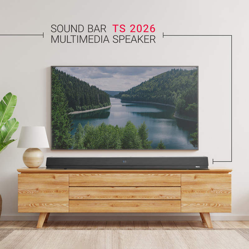 - ریموت کنترل: ساندبار TS 2026 با ریموت کنترل همراه است که به شما این امکان را میدهد تا به راحتی صدای دستگاه را تنظیم کنید و از امکانات آن به راحتی استفاده نمایید.