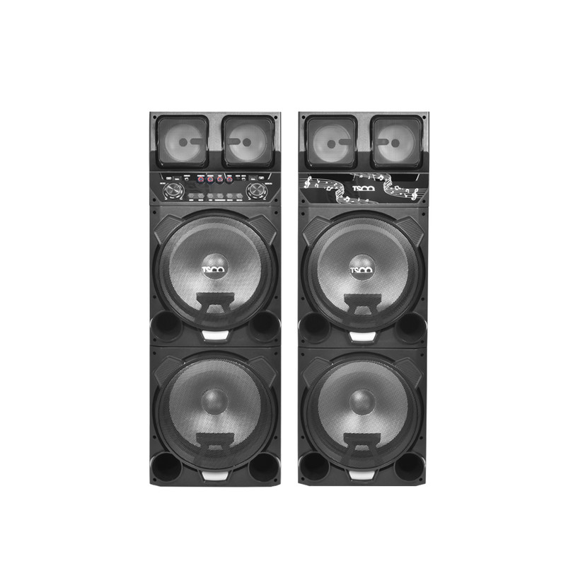 TS 2091 تشکیلشده از دو اسپیکر حرفهای با وزنی حدود 23kg برای هرکدام از اسپیکرها،4ساب ووفر کربنی 15 اینچی برای تولید صدای بم ،2 میدرنج 3 اینچی و 2 توییتر 3 اینچی برای ساپورت صدای زیر است که این ترکیب درمجموع توانی معادل 200 وات را برای تولید صدایی سوپر بیس و خارقالعاده فراهم میکند. در قسمت جلویی اسپیکر TS 2091 شاهد چندین پورت ورودی و خروجی هستیم. این پورتها در جلوی دستگاه تعبیهشدهاند تا کار کنترل آن را برایتان راحتتر کند. شما میتوانید جزئیات کار با صفحه کنترل اسپیکر حرفهای تسکو مدل TS 2091 را از طریق دفترچه راهنمای موجود در کنار اقلام همراه آن، مطالعه کنید. اسپیکر حرفهای تسکو مدل TS 2091 مهمانی گرمکن واقعی است. این روزها یک مهمانی پرشور، بدون دست گرفتن میکروفون و آواز خواندن کامل نمیشود. اسپیکر حرفهای تسکو مدل TS 2091 با توان واقعی 200 واتی و دو پورت ورودی میکروفون یک سیستم صوتی قدرتمند است و خواندن با آن به شما احساس یک خواننده واقعی را القا میکند. اسپیکر حرفهای تسکو مدل TS 2091 پورت ورودی گیتار داشته و میتوانید با آن آهنگهای موردعلاقهتان را بنوازید و از برگزاری کنسرت شخصیتان نهایت لذت را ببرید. 4 ساب ووفر 15 اینچی (38 سانتیمتری) این اسپیکر میتواند به معنای واقعی کلمه درودیوار خانه شما را بلرزاند. عملکرد عالی و صدای بلند این ساب ووفرها مناسب کسانی چون صاحبان باشگاهها است که نیاز دارند موسیقی را با صدای بلند پخش کنند. اسپیکر ایستاده تسکو مدل Ts 2091 یک اسپیکر قدرتمند و مناسب فضاهای بزرگ، مهمانیها و باشگاهها است. این اسپیکر دوقلو مشکیرنگ از پورتهای ورودی و خروجی متعددی پشتیبانی میکند و برای سهولت در استفاده، پورتهای ورودی و خروجی این دستگاه در رو به روی آن تعبیهشده است. این اسپیکر قدرتمند باقدرت تفکیک صدای 128bps و وضوح 70دسیبل، صدای بینقصی در اختیار شما میگذارد.