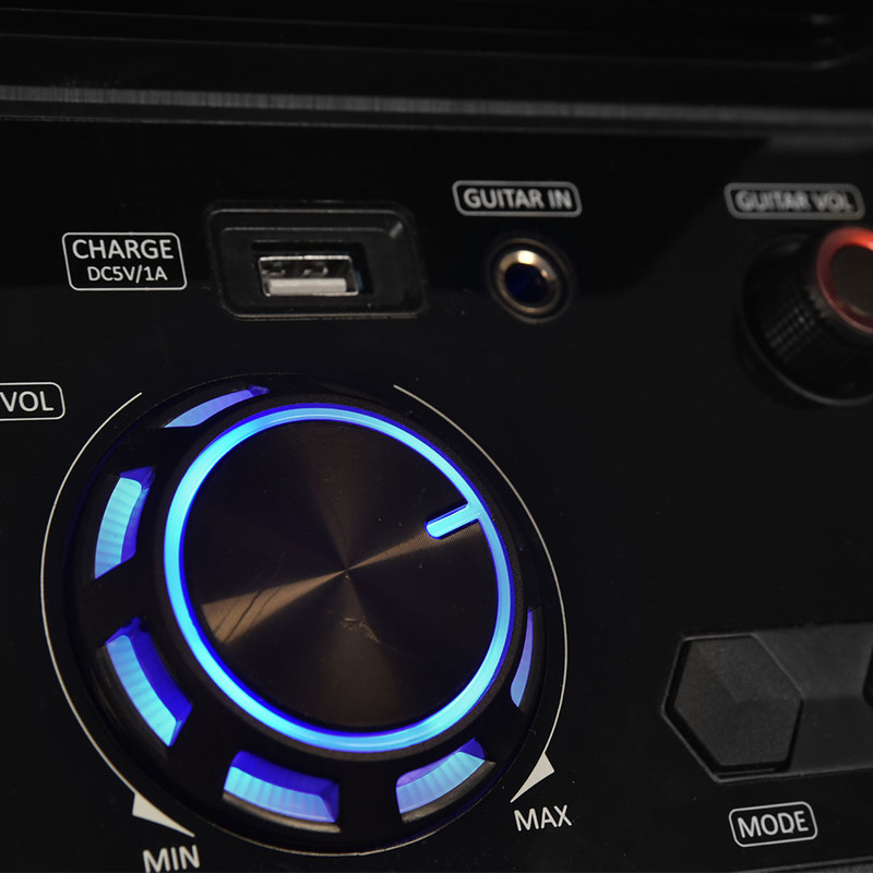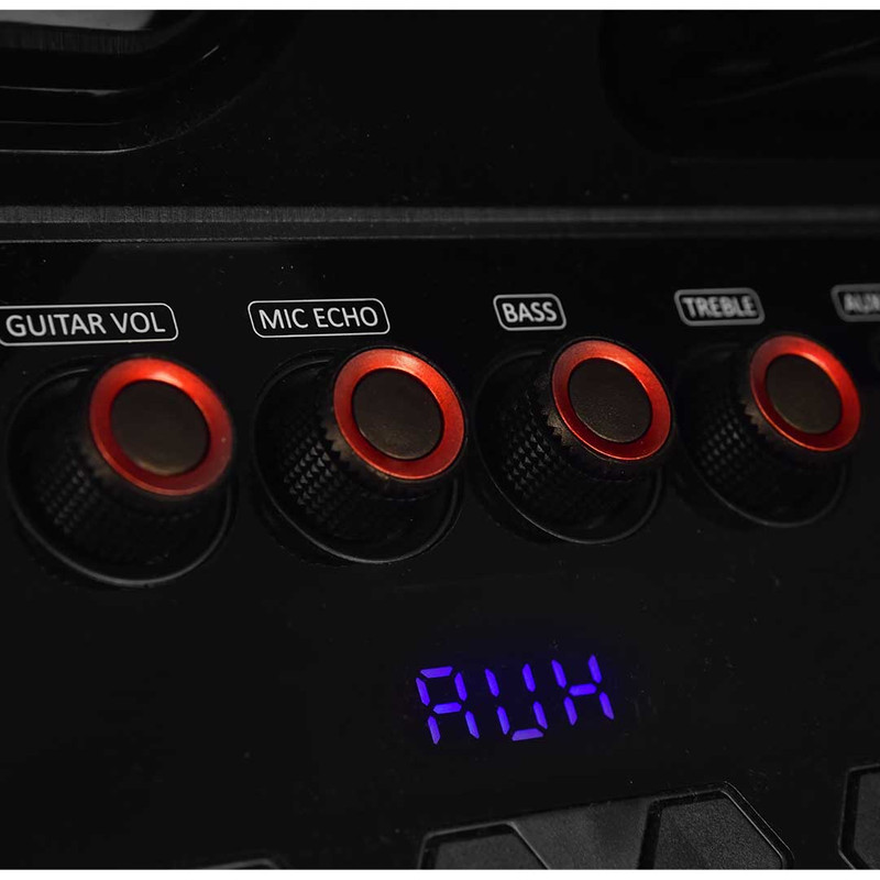 | امکانات و قابلیتها | 4 ساب 15 اینچیفناوریهای ارتباطی TF AUX OPTICAL COVAXIAL TWS قابلیت MICPRIORITYقابلیت musical light guitar and mic input mic adjustable volume 4ohm impedance 850 mV sesitivity with Total 2 light ball (on top of each speaker has 1 light ball) Super Bass twin Speaker with dual 15"" Subwoofer, 3"" Tweeter and 3"" mid-range for each side RMS 200W BT, USB, SD, AUX, Optical, Mic and Guitar inputs FM Radio With 2pcs UHF Mic and Remote control SNR: 70db Frequency Range: 50Hz-20KHz One Extra USB port for ChargingDigital Display/ MIC recordingFunctions: Record, TWS, Karaoke (Mic Priority), Echo mode, Adjusting Treble, Bass, Echo, mic and Guitar volume, 2 Light Balls" |