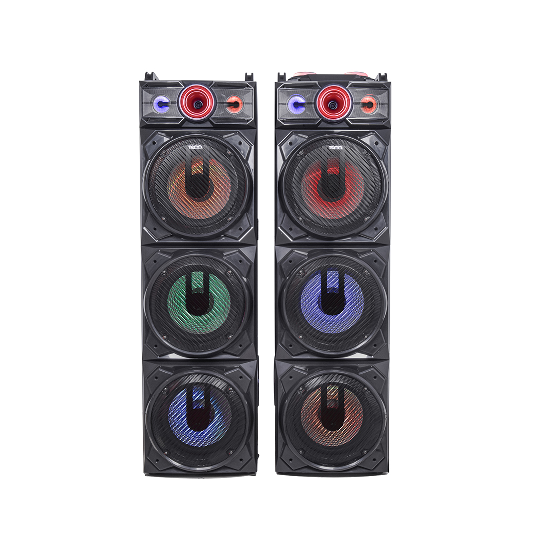همچنین قدرت تفکیک صدا، اکولایزر و رقص نور موزیکال دارد. TS 2095 خروجی هدفون ندارد؛ اما بهجای آن دو ورودی میکروفن دارد و میتوانید با دوستتان مسابقه کارائوکه و خوانندگی بگذارید و لذت دنیا را ببرید. توان اسمی دستگاه 40500w و توان واقعی آن 180W ( 90W + 90 W) است. جنس بدنه دستگاه چوب بوده و روی هر قل 3 و مجموعا 6 عدد ساب ووفر 12 اینچی کربنی روی این اسپیکر قدرتمند نصب است.