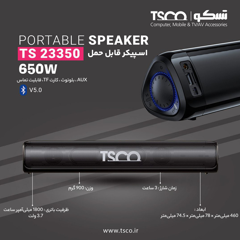 اسپیکر بلوتوثی و مینی ساندبار قابل حمل تسکو مدل TS 23350: صدای شفاف و حمل آسان